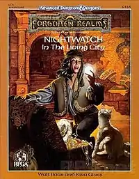 LC3 Nightwatch in the Living City includes design by Walter M. Baas and Kira Glass with editing by John Nephew, and was published by TSR, Inc. as a 32-page module.[1] Nightwatch in the Living City is based on a tournament adventure originally designed and run through the RPGA Network.[1]