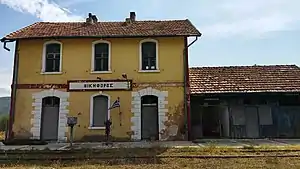 Nikiforos railway station (Greek: Σιδηροδρομικός Σταθμός Νικηφόρου, romanized: Sidirodromikós Stathmós Nikiforos) is a railway station that serves the Northern Greek village of Nikiforos, in Drama in East Macedonia and Thrace, Greece. The station is located within the settlement limits. The neoclassical station building (as of 2021) is unstaffed and in a rundown state. The station building and some of its auxiliary buildings have been classified as monuments.
