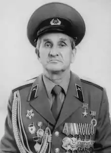 Nikolai Ivanovich Kuznetsov (Russian: Николай Иванович Кузнецов, 29 April 1922 — 11 September 2008) was a soldier in the Red Army during World War II and one of only four people that was both a Hero of the Soviet Union and full bearer of the Order of Glory.