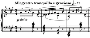 The Thirteenth Sonata, the "Minacciosa"[7] ("menacing") in F minor, Op. 53, No. 2, is another one-movement work. It is highly chromatic, and contains a fugue. Medtner described it as "my most contemporary composition, for it reflects the threatening atmosphere of contemporary events". Marc-André Hamelin described it as "the most concentrated 15 minutes of music one could ever hope to play or listen to". It was dedicated to the Canadian pianist and pupil of Scriabin, Alfred La Liberté, one of Medtner's most loyal supporters.