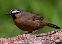 - ↑ BirdLife International (2017). "Strophocincla cachinnans". IUCN Red List of Threatened Species. 2017: e.T103874076A111175518.