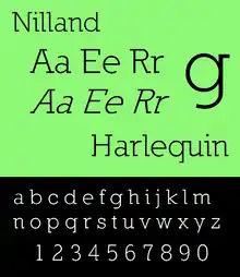 Nilland is a serif typeface designed by Manfred Klein.[1] It is primarily intended for headers, not body text.