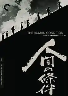The film was released as a trilogy in Japan between 1959 and 1961, while shown at various film festivals internationally. All-night marathons of the entire trilogy were occasionally shown in Japan; screenings with Tatsuya Nakadai in attendance typically sold out.[6] In 1999, Image Entertainment released The Human Condition on three separate Region 0 DVDs. These discs were criticised for their image and sound quality and translation.[8] On 8 September 2009, The Criterion Collection released the entire trilogy with restored image, new translation and supplements.[9] Arrow Video released a dual-format (Blu-ray and DVD) edition of The Human Condition in September 2016. This release included an introduction and select scene commentary by film critic Philip Kemp and supplements, including a booklet with new writing by film scholar David Desser.[10]