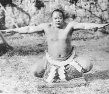 Nishinoumi Kajirō I (西ノ海 嘉治郎, February 19, 1855 – November 30, 1908) was a Japanese professional sumo wrestler from Sendai, Satsuma Province. He was the sport's 16th yokozuna, and the first to be officially listed as such on the banzuke ranking sheets, an act which strengthened the prestige of yokozuna as the highest level of achievement in professional sumo.