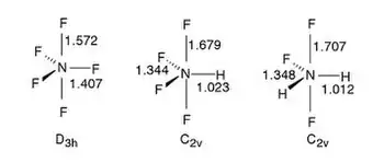 3. Christe, Karl O.; William W. Wilson (December 1992). "Nitrogen pentafluoride: covalent NF5 versus ionic NF4+F and studies on the instability of the latter". Journal of the American Chemical Society. 114 (25): 9934–9936. doi:10.1021/ja00051a027.