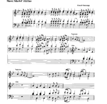 "Nkosi Sikelel' iAfrika" was originally composed as a hymn in 1897 by Enoch Sontonga, a teacher at a Methodist mission school near Johannesburg. The words of the first stanza and chorus were originally written in Xhosa as a hymn. In 1927 seven additional Xhosa stanzas[3] were added by the poet Samuel Mqhayi. Sontonga originally composed the hymn in B-flat major with a four-part harmony supporting a repetitive melody characteristic of "both Western hymn composition and indigenous South African melodies."[4] The hymn was taken up by the choir of Ohlange High School, whose co-founder served as the first president of the South African Native National Congress. It was sung to close the Congress meeting in 1912, and by 1925 it had become the official closing anthem of the organisation, now known as the African National Congress.[5] "Nkosi Sikelel' iAfrika" was first published in 1927.[5] The song was the official anthem for the African National Congress during the apartheid era and was a symbol of the anti-apartheid movement.[6] For decades during the apartheid regime it was considered by many to be the unofficial national anthem of South Africa, representing the suffering of the oppressed masses. Because of its connection to the ANC, the song was banned by the regime during the apartheid era.[7]