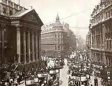 No 1 Poultry[lower-alpha 1] is a building in the City of London, allocated to office and commercial use. It occupies the apex where the eastern ends of Poultry and Queen Victoria Street meet at Mansion House Street, the western approach to Bank junction.