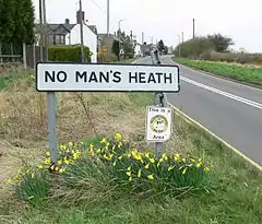 No Man's Heath is an area of the civil parish of Newton Regis, in the North Warwickshire district, in the county of Warwickshire, England, about 6 miles (9.7 km) northeast of Tamworth. It is near the boundaries of four English counties: Derbyshire, Leicestershire, Warwickshire and Staffordshire. Nearby in the late 19th century were Netherseal Colliery and Netherseal Hall. Today a small village exists here, also called No Man's Heath, which is the northernmost settlement in Warwickshire. No-Mans-Heath was formerly an extra-parochial tract,[1] in 1858 No Mans Heath became a separate civil parish,[2] on 24 March 1888 the parish was abolished and merged with Newton Regis.[3] In 1881 the parish had a population of 70.[4] The county boundary which used to divide the village between Leicestershire and Warwickshire has been re-drawn on 1 April 1965[5] to place the whole village in Warwickshire.[6]