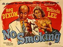 No Smoking is a 1955 British comedy film directed by Henry Cass and starring Reg Dixon, Peter Martyn, Belinda Lee and Lionel Jeffries.[2][3][4] It was produced by Tempean Films as a second feature. The film was shot at Southall Studios with sets designed by the art director Wilfred Arnold. Shortly after the production Lee was signed up for a contract with the Rank Organisation.