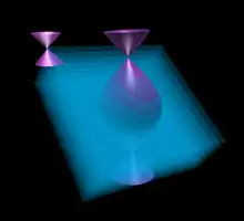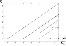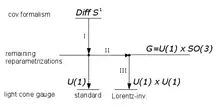 - ↑ Polyakov, A.M. (1981). "Quantum geometry of bosonic strings". Physics Letters B. Elsevier BV. 103 (3): 207–210. doi:10.1016/0370-2693(81)90743-7. ISSN 0370-2693.: the paper shows in frames of path integral formulation, that quantum Nambu-Goto string theory at d=26 is equivalent to collection of linear oscillators, while at other values of dimension the theory exists as well, and contains a non-linear field theory associated with Liouville modes. Papers cited below use for quantization Dirac's operator formalism.