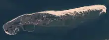The island is 14 by 2.5 kilometres (8.7 by 1.6 mi), having a total area of about 26.3 square kilometres (10.2 sq mi) and is therefore Germany's ninth-largest island. Norderney's population amounts to about 5,850[3] people. In 1946 Norderney gained municipal status and belongs to the Aurich "Kreis" (county). On the northern side of the island lies a 14-kilometre (8.7 mi) long sandy beach.