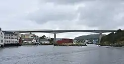 The Nordsund Bridge (Norwegian: Nordsundbrua) is a bridge that crosses the Nordsundet strait between the islands of Nordlandet and Gomalandet in the town of Kristiansund which is in Kristiansund Municipality, Møre og Romsdal county, Norway. The bridge is 333 metres (1,093 ft) long, and the maximum clearance to the sea is 28 metres (92 ft). The bridge carries Norwegian National Road 70.