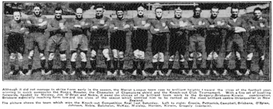 - ↑ "Western Suburbs' Tour/Marists Narrowly Defeated/Thrilling Opening Match". Auckland Star. Vol. LXV, no. 226. 24 September 1934. p. 13. Retrieved 19 January 2020.