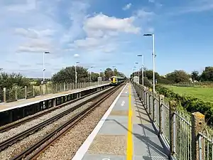 - ↑ Butt, R.V.J. (1995). The Directory of Railway Stations. Yeovil: Patrick Stephens Ltd. pp. 185, 172. ISBN 1-85260-508-1. R508.