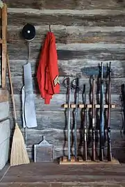 After resupplying, French led some of his force back east, leaving Assistant Commissioner James Macleod to advance on Fort Whoop-Up with the three remaining divisions, approximately 150 men.[43] When the police reached the fort on October 9, they were prepared for a confrontation, but the whisky traders were aware that they were approaching and had long since moved on.[44] The force received new orders from Ottawa to garrison the area and settled down to build Fort Macleod on an island in Old Man's River.[43] The expedition had been badly planned and executed, and almost failed; the historian William Baker describes it as "a monumental fiasco of poor planning, ignorance, incompetence, and cruelty to men and beasts".[45][lower-alpha 2] Nonetheless, it rapidly became portrayed by the force as epic story of bravery, endurance and determination.[49]