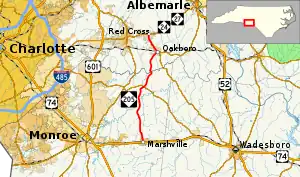 Red Cross22.035.4 NC 24 / NC 27 (Red Cross Road) / Oak Ridge Road Charlotte, Albemarle