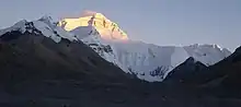 Everest's north face, lit up by the setting sun