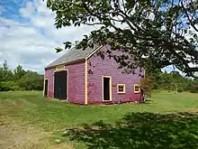 The site also includes a small barn and dry toilets. The outbuildings are covered in the same manner as the wooden shingle house. A garage, which is a later addition, is attached to the house by a covered passage.[2]