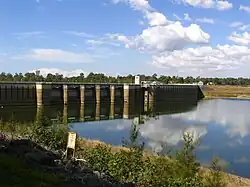 The North Pine Dam is a mass concrete gravity dam with earth-fill embankments on abutments with a gated spillway across the North Pine River that is located in the South East region of Queensland, Australia. The main purpose of the dam is for supply of potable water for the Moreton Bay region and Brisbane's northern suburbs.[1][4] The impounded reservoir is called Lake Samsonvale.