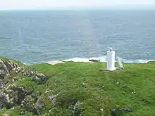 The light shows two white flashes every ten seconds, emitted from a lamp on top of a fiberglass hut with no lantern. It is solar powered[1] and totally automated.