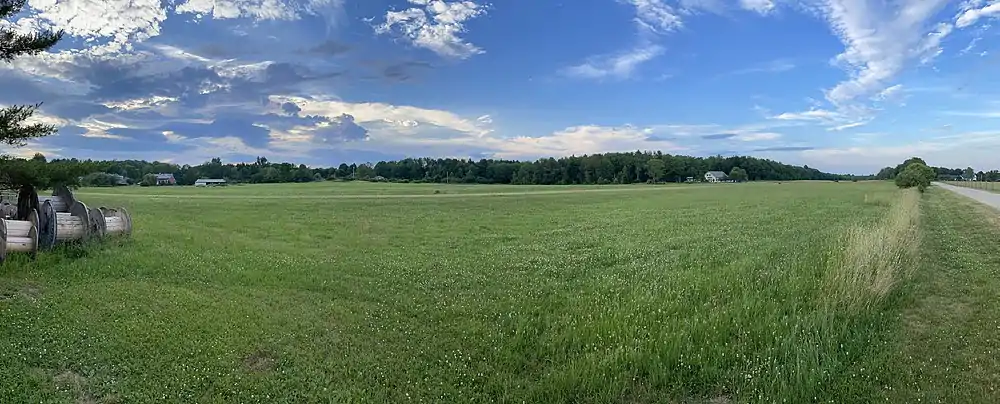 The privately owned, unattended Eagle Field airstrip is located between Walnut Hill Road and Prince Well Road, just north of Toots Ice Cream. Its FAA identifier is 15ME, and it was activated in 2006. Its (unpaved) runway headings are 7 and 25 and its height above sea level is 150 feet.[8] Its area control center is Boston Center, while its flight service station is Bangor.[9]