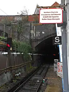The official name for this line is the Moorgate Line,[4][5] but it is rarely referred to as this due to confusion with the Widened Lines route which goes from Kentish Town to Farringdon, which until March 2009, also served Moorgate surface-level station on the London Midland Region.[6][7] The Northern City Line's name is derived from the fact that it was originally a London Underground line, where it was described or managed as part of both the Metropolitan and Northern lines (sometimes as the "Highbury Branch"), although never connected to either. Built as an isolated route with a northern terminus at Finsbury Park, reconstruction connected it to the British Rail network in 1976 and began its modern service pattern. One of London's deep-level railways, the Northern City is unlike the others in being owned by Network Rail and served by commuter trains operated by Great Northern from Moorgate to Finsbury Park and onwards to Hertfordshire.