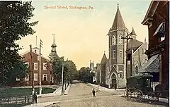 The first school within the present limits of Slatington was in the old stone mill in Lower Slatington in 1820 which was built by William Kern, but it was only operated for a year or two. The next school was opened in 1858. At this time, a Welsh Church divided and the School Directors of Washington Township rented the stone church building located on West Church Street in the borough. This building was used for school purposes until 1868. A school also operated for a time in the second story of the Lehigh Slate Company's store.
