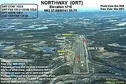 Northway Airport (IATA: ORT, ICAO: PAOR, FAA LID: ORT) is a state-owned public-use airport serving Northway, a community located in the Southeast Fairbanks Census Area of the U.S. state of Alaska.[1] It is included in the National Plan of Integrated Airport Systems for 2011–2015, which categorized it as a general aviation facility.[2]