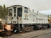 Diesels were being used on all trains by 1953, with the exception of ten-wheelers number 181 and 183 pulling passenger trains numbered 3 and 4 between San Rafael and Eureka with number 182 on standby. The #3/#4 trains offered sleeping cars, a cafe-lounge in addition to coach cars. Passengers from San Francisco would take Greyhound Buses from the San Francisco Ferry Building at the base of Market Street to San Rafael.[6] NWP locomotives 112, 140, 141, 143, and 178 plus SP numbers 2345, 2356, 2564, 2582, and 2810 were stored at Tiburon for emergency use;[7] but steam power had disappeared by 1955. On November 10, 1958, all mainline passenger service was discontinued south of Willits.[8][9] The only remaining service was a tri-weekly Willits-Eureka round trip, operated by a single Budd Rail Diesel Car, which ran until April 30, 1971.[10] When Amtrak took over intercity passenger rail service on May 1, 1971, it did not continue service on the NWP.