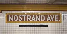 - ↑ Cox, Jeremiah (December 29, 2008). "Another Nostrand Av name tablet, with text beneath it for the exit to Nostrand Ave". subwaynut.com. Archived from the original on October 20, 2012. Retrieved February 7, 2020.