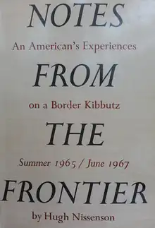 Notes from the Frontier is a non-fiction book by American author Hugh Nissenson describing life on a kibbutz in northern Israel, published in 1968. The book documents the time Nissenson and his wife Marilyn spent on kibbutz Ma'ayan Baruch in the summers of 1965 and 1967.[1]
