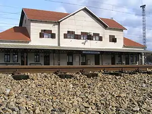 Nova Gradiška railway station (Croatian: Željeznička stanica Nova Gradiška) is a railway station on Novska–Tovarnik railway in Croatia. Located in Nova Gradiška. Railroad continued to Okučani in one and the other direction to Staro Petrovo Selo. Nova Gradiška railway station consists of 6 railway track. [1]