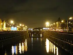 Novo-kamenniy Bridge is a crossing of the Obvodny Canal in Saint Petersburg, Russian Federation. The bridge forms part of Ligovsky Avenue and connects Bezimyanni Island with the Tsentralny and Frunzensky districts of the city.