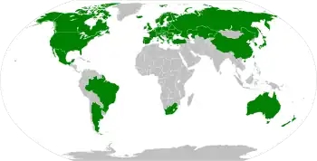 In June 2016, India got crucial support from Mexico in its bid to become a participant of the NSG ahead of a plenary meeting of the 48-nation bloc whose members are allowed to trade in and export nuclear technology.[16] On 17 June, British Prime Minister David Cameron had assured Prime Minister Narendra Modi of the UK's "firm support" for India's NSG membership bid.[17] In an interview on 18 June, Russian President Vladimir Putin said that he was 'positive' about India's entry into NSG.[18] On 20 June, Canada stated that NSG will be strengthened with India's presence.[19] On 22 June France reiterated its support to India, and urged all the other 48 members of the NSG to allow entry for India into the atomic control body.[20] China remains opposed to Indian membership.[21]