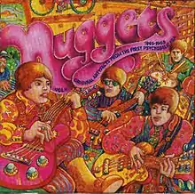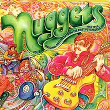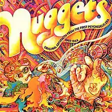 Nuggets: Original Artyfacts from the First Psychedelic Era is a compilation album of American psychedelic and garage rock singles that were released during the mid-to-late 1960s. It was created by Lenny Kaye, who was a writer and clerk at the Village Oldies record shop in New York. He would later become the lead guitarist for the Patti Smith Group. Kaye produced Nuggets under the supervision of Elektra Records founder Jac Holzman. Kaye conceived the project as a series of roughly eight LP installments focusing on different US regions, but Elektra convinced him that one double album would be more commercially viable.[4] It was released on LP by Elektra in 1972 with liner notes by Kaye that contained one of the first uses of the term "punk rock".[5] It was reissued with a new cover design by Sire Records in 1976. In the 1980s, Rhino Records issued Nuggets in a series of fifteen installments, and in 1998 as a 4-cd box set.
