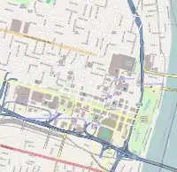 25th Street appears to the north of downtown where Jefferson Avenue curves and creates space for another road.
