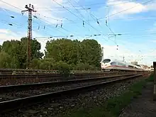 The Aurach viaduct in Emskirchen was rebuilt from May 2014 to November 2016.[18] This 527.5 m-long and 40 m-high bridge made of reinforced concrete replaced the old bridge and lies about 90 m north of it. The route was changed over a length of 1.75 km.[19][20][21] The solution had been identified in an EU-wide planning competition.[21] An improvement in the alignment allowed speeds over the new bridge to be raised from 110 to 140 km/h for conventional trains and from 140 to 160 km/h for tilting trains.[22]