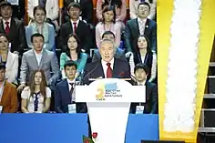 Nazarbayev, along with seventeen heads of state and government from around the world, which included Felipe VI of Spain and leaders of the Shanghai Cooperation Organization member countries, consisting of Russia, China, Kazakhstan, Kyrgyzstan, Uzbekistan, Tajikistan, Pakistan and India, attended the opening ceremony of Expo 2017 which was held in Astana.[92] An estimated 3.86 million people visited the site with Nazarbayev at the closing ceremony on 10 September 2017 calling it as "Kazakhstan's most brilliant achievements since its independence."[93]