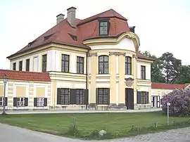 After his accession in 1745 Maximilian III Joseph, Prince-Elector of Bavaria, commanded the establishment of manufacturing companies in order to bail out the state finances. On 11 November 1747 the first manufactory with potters and modelling shops, painting and writing rooms was set up at the Grüne Schlössl, Neudeck Castle formerly located in the area of the modern day Munich borough of Au-Haidhausen. Not until 1754 after Joseph Jakob Ringler had mastered the complex processes of production, regular manufacture of porcelain finally began to succeed. In the same year the rococo porcelain sculptor Franz Anton Bustelli came to work at the factory. In 1755 the factory received its first commission from the Bavarian court and in 1756 came the first success in painting the porcelain in colour. The skillful management of lawyer and entrepreneur Count Sigmund von Haimhausen ensured that by 1758 the factory was placed on a sound commercial footing. In 1761 the manufacture moved to a Cavalier house, a prestigious two-storey hipped roof building with a semicircular risalit center and structured plaster on the grand circle near the main entrance of the Nymphenburg Palace, where it is still located today.[1][4]