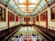 Between 1891 and 1895, Ohio Wesleyan specialized the curriculum by establishing departments for physics, zoology, geology, speech, history, French, English, and economics.[30] This specialization encouraged undergraduates to continue studies at graduate level, allowed professional preparation for the Doctor of Philosophy degree, and promoted exchange study in Europe.[31] Two professional schools for law and medicine were formed in 1896.