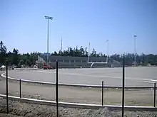 A new stadium to replace the aged Memorial Stadium was constructed in 2007 on the west end of the OHHS campus. The new stadium, dubbed "Wildcat Memorial Stadium," had its grand opening on September 7, 2007, eight months after construction began in January. The Wildcat Memorial Stadium was built by Ebenal General Contractors of Bellingham. The facility has a covered main grandstand with 2,500 home seats and a smaller covered grandstand with 500 visitor seats. The playing field is a FieldTurf surface and is encircled by a track and field oval. The stadium includes locker rooms, bathrooms, a concession area, and storage space.