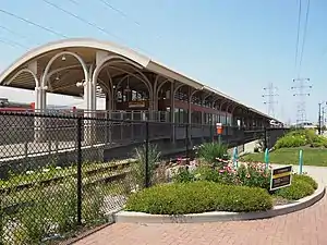 A groundbreaking ceremony took place at the adjacent Illinois Science + Technology Park on June 21, 2010.[3] On June 8, 2011, the Chicago Transit Board announced that the name of the station would be Oakton–Skokie. Naming of the station was done concurrently with the renaming of the Dempster–Skokie Yellow Line station and terminus.[4], The Skokie Valley Trail runs west of the station. [5]