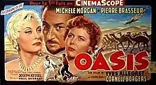 Oasis (German: Oase) is a 1955 French-West German adventure film directed by Yves Allégret and starring Michèle Morgan, Cornell Borchers, Carl Raddatz and Pierre Brasseur. It was based on the 1933 novel The Commander by John Knittel. The screenplay was written by Joseph Kessel, Ben Barzman, and Georges Kessel. It was shot at the Bavaria Studios in Munich and on location in Marseille as well as in Marrakesh, Casablanca, Agadir and Guelmim in French Morocco.