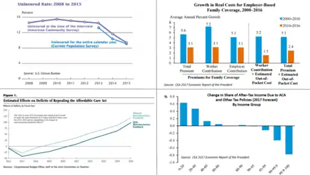 - ↑ Ip, Greg (August 17, 2016). "The Unstable Economics in Obama's Health Law". The Wall Street Journal. ISSN 0099-9660. Retrieved August 23, 2016.