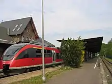 Oliver Wittke, the former NRW transport minister, turned down a proposal to reactivate the entire section in 2005. The Marienheide–Meinerzhagen section returned to operation in 2013.[3] The section of the Volme Valley Railway between Meinerzhagen and Lüdenscheid-Brügge was finally reactivated at the timetable change in December 2017. Now trains from Cologne can run directly to Lüdenscheid.