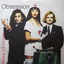 Obsession is a song recorded by Swedish band Army of Lovers. It is one of their most well-known songs and scored chart success across Europe. Released in September 1991 as the second single from their second album, Massive Luxury Overdose (1991), it soared to the number-one position on both the radio and the dance charts in Sweden.[1] It also peaked at number two on the Swedish singles chart, number four in Belgium, number seven in Austria and Germany, and number nine in Spain. The lyrics are written by Alexander Bard and Anders Wollbeck, and the song is in part inspired by Laurie Anderson's 1981 song, "O Superman". Primarily, the "ah ah" looped backing track.