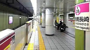 The station lies on the boundary of Shinjuku and Toshima wards. Before it opened its name was intended to be simply Minami-Nagasaki (from the neighborhood in Toshima ward), but this was changed to reflect its position on the boundary.