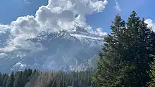 The headwalls of the Kandertal landslide are still unstable.[23] In summer 2018 a volume of 0.02 cubic kilometres (0.0048 cu mi) in the "Bim Spitze Stei" area[35] between the Kandertal and Oeschinensee landslide detachment areas became noticeably unstable.[33] Geophysical analyses have shown that there are a number of rock masses in motion, some of them containing warm permafrost, with most motion occurring in summer. As of 2021, the speed of the motion has increased with every year.[36]