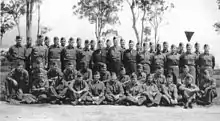 Graduating class of September 1944, SWPA OCS at Camp Columbia, Australia, showing an integrated population.