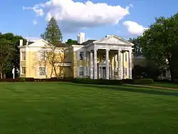 The Oglebay Mansion was built in 1846 by Paul Matvey as an eight-room farmhouse. Earl W. Oglebay, co-founder of the Oglebay-Norton Company, purchased the mansion and its 25 acres (10 ha) adjoining areas in 1900, renamed it Waddington Farm, and used it as his summer estate and model farm. He was the ninth owner of the home and its adjoining land, and expanded the farmhouse into a mansion by adding additional wings and architectural features like the front portico. He gradually expanded the estate by purchasing adjacent farms until Waddington Farm had grown from 25 acres (10 ha) to 750 acres (300 ha) at the time of his death in 1926. The mansion became a museum in 1930. The museum, which includes restored rooms, local history exhibits, and exhibits on Earl W. Oglebay and his former estate, is operated by the Oglebay Institute and is open to the public for tours and programs throughout the year